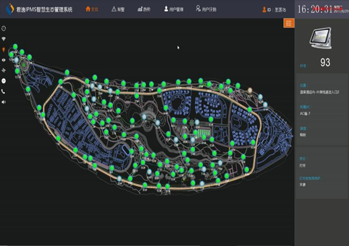 圣莲岛作为遂宁“城市之心”,已经成为一座生态岛、文化岛、旅游岛,岛上有著名景点世界荷花博览园。为保障岛上生态系统与游客安全,提升服务品质,岛内建设以安防系统、无线WIFI系统,背景音乐系统,LED智能照明系统,紧急呼叫系统等为主的智慧系统。各子系统以共杆形式分散布置在岛内,有上百个布置点。如何有效保障维护这些布置分散的系统,做到有效监控,迅速定位,及时维修,给智能化管理的发展提出了新的挑战。