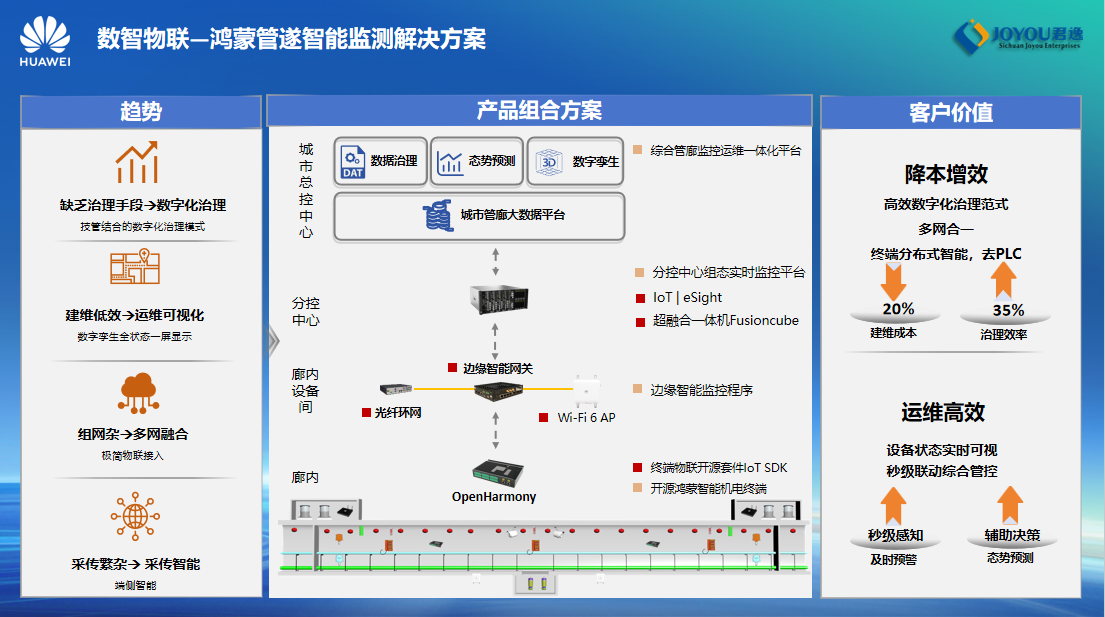 10月22日,华为通过其官方视频号“华为ICT产品组合”正式发布了与君逸数码联合打造的鸿蒙管隧智能监测系统宣传视频,双方共同推出的基于鸿蒙技术的“鸿蒙管隧智能监测系统”,以数字化、智能化手段赋能城市地下综合管廊运维管理,为城市“生命线”的安全高效运行构筑智慧基石,推动城市基础设施向高效、可靠、智能方向迈进。