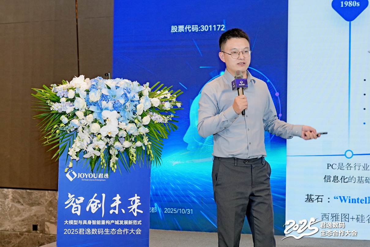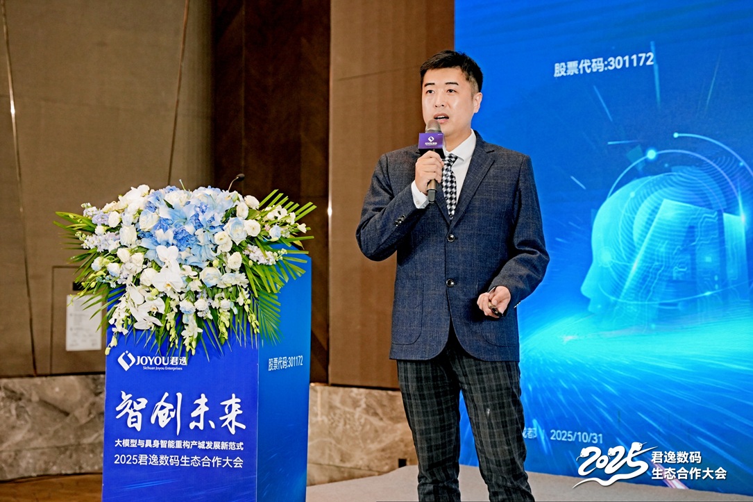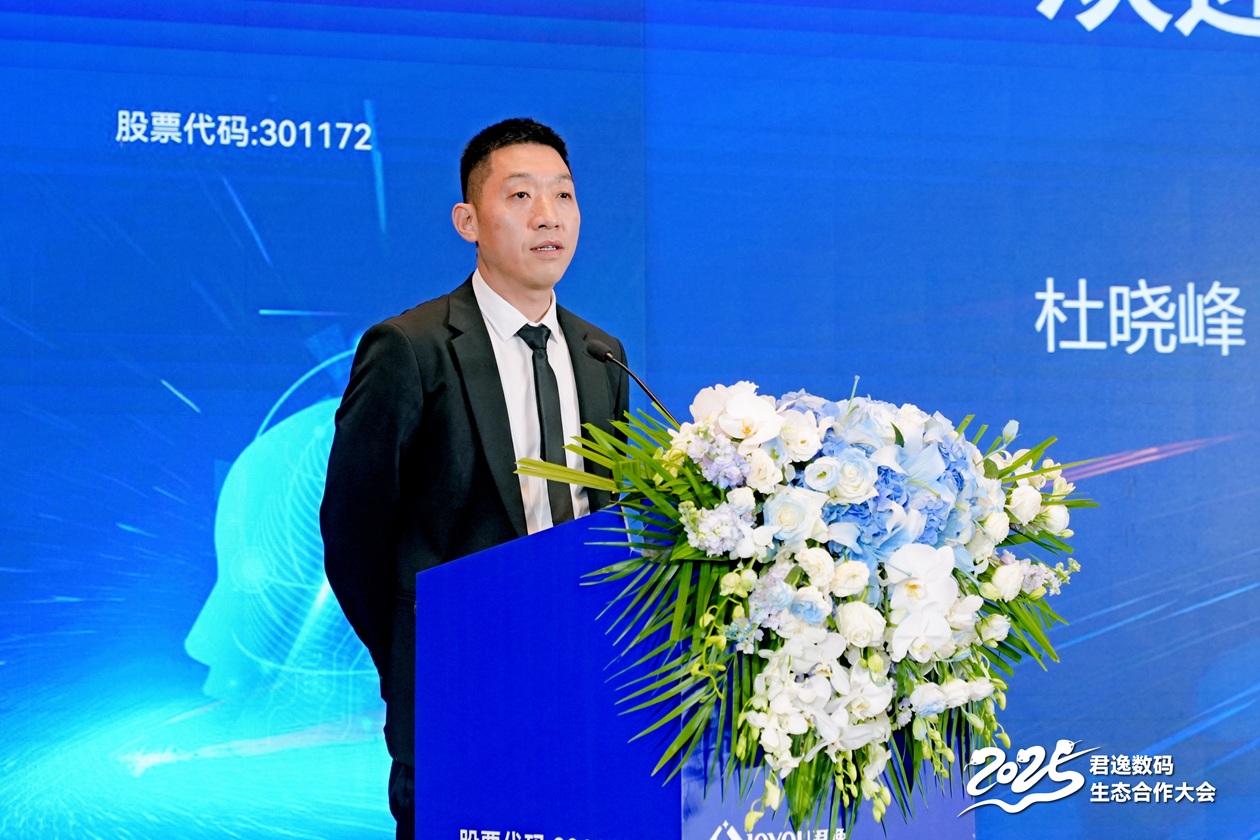 大会在君逸数码董事、副总裁杜晓峰的精彩致辞中拉开帷幕。他以“克制”与“拥抱变化”为核心,阐述了君逸数码在技术浪潮中的发展心态与价值逻辑。杜晓峰指出,AI与具身智能正带来颠覆性趋势,企业需聚焦核心使命,明确“帮什么人,解决什么问题”。他强调,“一个人可以走得快,但一群人可以走得久”,君逸数码将秉持开放共赢的生态合作布局,与伙伴共同站在“AI和机器人改变世界的前夜”,携手“做好活、处好朋友、过好日子”,共创聚合价值涌现的未来。