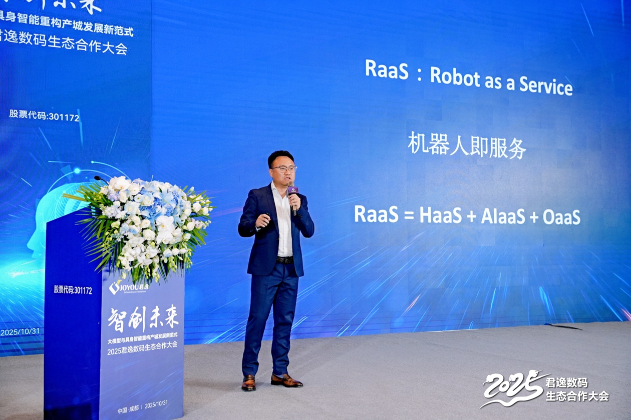 作为君逸数码新近成立的具身智能创新中心总经理,彭钊带来了《RAAS:以客户价值为导向的具身智能落地之路》的精彩分享,标志着君逸数码在具身智能领域的战略布局迈入新阶段。他提出的 RaaS(Robot as a Service)模式,将机器人硬件、AI 智能、数据运维打包成可计量的服务,实现 “客户只为结果付费” 的全新商业范式。彭钊从经济、技术等维度,分析了 “服务化” 成为具身智能落地必然趋势,并介绍了君逸城市级机器人服务平台如何整合清洁、安防、巡检等多类机器人,通过云-端协同,最终为客户交付可量化的业务成果。