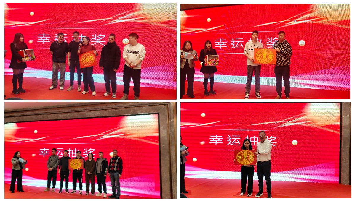 晚宴进行中,备受期待的幸运抽奖环节点燃了全场的激情。一份份精心准备的幸运大奖依次揭晓,惊喜的欢呼声与祝贺声此起彼伏。抽奖不仅送出了丰厚的礼物,更传递了公司对员工满满的关怀与好运的期盼,现场欢声笑语不断,气氛热烈非凡。