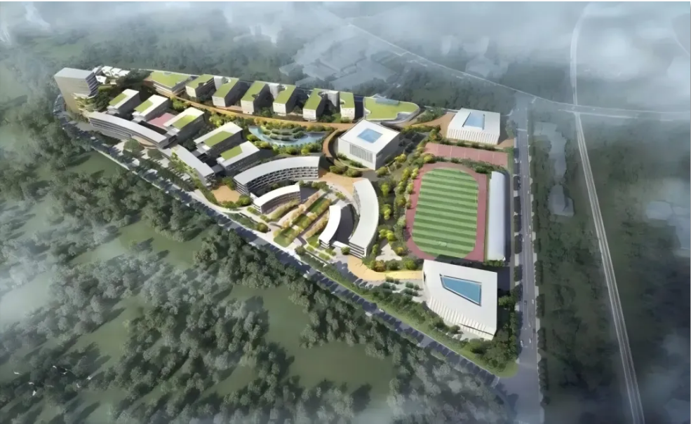 四川天府新区综合高级中学是由四川天府新区高规格举办的一所公办全日制高中,对标省级示范性高中、以共享理念全新开办的首所综合性高级中学。学校占地280亩,建筑面积19万平方米,投资约12.8亿元。秉承国家级新区理想校园设计理念,打造现代科技、绿色共享、山林融合、湖水环绕、高低错落的校园环境。