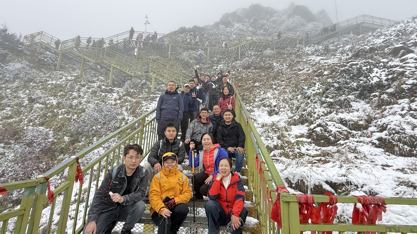 26日一早,部分热爱运动的同事便迎着晨光开始了自愿晨练,以饱满的精神状态迎接新的一天。在享用过早餐后,团队开始了第二天的西线游览。而惊喜也从一早便不期而遇。当团队抵达缆车乘车点,正准备开启高空之旅时,眼尖的同事发出了惊喜的低呼——不远处的树上,两只憨态可掬的小熊猫正悠闲地觅食! 它们毛色亮丽,拖着蓬松的大尾巴,在枝桠间灵活活动的样子瞬间吸引了所有人的目光。大家纷纷放缓脚步,举起手机,不愿打扰这珍贵的画面,只是静静地拍照、录制视频,记录下这难得一见的可爱场景。这场与“雪山精灵”的美丽邂逅,让大家倍感幸运,也对喇叭河优良的生态环境赞不绝口,带着这份美好的心情,大家乘缆车抵达焦山,将壮丽的云海与雪山盛景尽收眼底。随后,团队继续游览了色彩绚丽的红石滩与静谧迷人的鹿池,彻底沉醉于喇叭河的自然魅力之中。